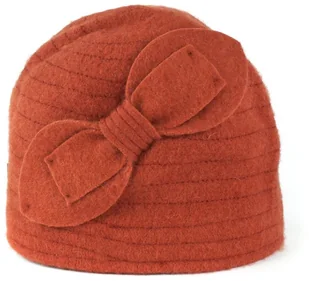 Elegancka czapka z filcowanej wełny. Ozdobiona przeszyciami oraz gustowną kokardą. Bardzo twarzowa, idealny dodatek do eleganckich płaszczy i kurtek.