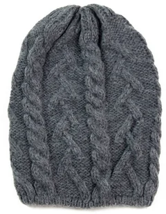 Długa czapka zdobiona warkoczami. Wykonana z niegryzącego i rozciągliwego materiału. Łatwa do ułożenia. Wyprodukowano w Polsce. Dostępny także komin do kompletu.