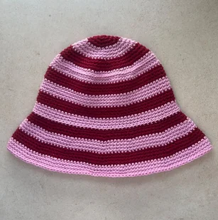 Bawełniany letni kapelusz w różowo bordowe paski