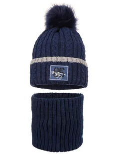 Chłopięcy komplet zimowy czapka i komin dinozaur granatowy Ambra r.46/48