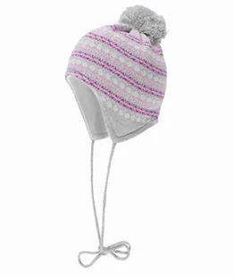 Czapka dziewczęca z pomponem, wiązana, szaro-różowa, Döll