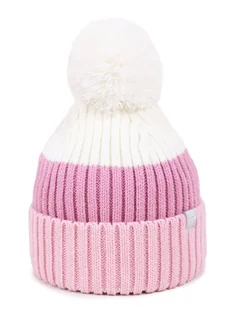 Dziewczęca kolorystyka Jednowarstwowa, bez podszewki Gustowne ozdoby – wywinięcie i naszywka Zimowa czapka dla dziewczynki w kolorze różowym i ecru, o regula...