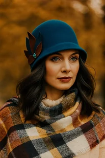 Kapelusz w kolorze turkusowym. Wykonwny z filcu wełnianego. Kolor turkus z brązem czekoladowym. Rozmiar 5 ...