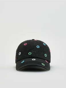 Reserved - Czapka z daszkiem w kwiaty - czarny