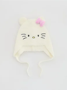 Reserved - Wiązana czapka Hello Kitty - złamana biel