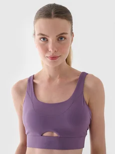Splot interlock sprawia, że materiał jest wytrzymały, ale jednocześnie miękki, dobrze się układa i chłonie wilgoć. Posiada gładką strukturę po obu stronach. Stanik sportowy damski na jogę jest wykonany z materiału syntetycznego, który zapewnia trwałość i jest łatwy w pielęgnacji. Dzięki dodatkowi elastanu (18%) jest rozciągliwy i wygodnie układa się na sylwetce. Damski stanik do ćwiczeń posiada szybkoschnące włókna w technologii 4FDry, które wspierają odprowadzanie wilgoci z dala od ciała.