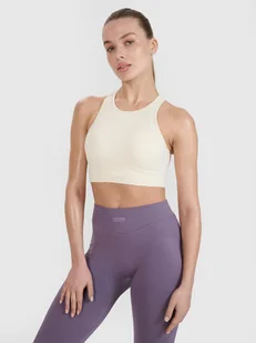 KOLEKCJA LIMITOWANA 4F x ANNA LEWANDOWSKA Biustonosz na trening dla kobiety - CECHY: zakres rozmiarów: XXS-XL – szeroki wybór rozmiarów pozwala na idealne dopasowanie do różnych sylwetek krój: slim – przylegający fason podkreśla sylwetkę i zapewnia komfort podczas aktywności średnie wsparcie – stabilizuje biust, zapewniając komfort i pewność podczas ćwiczeń o umiarkowanej intensywności wykonany z materiału syntetycznego – trwała i łatwa w pielęgnacji tkanina odporna na zużycie rozciągliwy materiał – dodatek elastanu (11%) zwiększa elastyczność i umożliwia dopasowanie do ruchów ciała jednolita kolorystyka – uniwersalny design pasujący do wielu stylizacji, zarówno sportowych, jak i casualowych miękka w dotyku dzianina single jersey – gładka powierzchnia zapewnia wygodę noszenia i przyjemne uczucie na skórze okrągły dekolt – klasyczny fason, który dobrze układa się na ciele i zapewnia wygodę miękkie, wyjmowane miseczki – umożliwiają indywidualne dopasowanie do sylwetki i poziomu wsparcia elastyczny ściągacz pod biustem – ściśle przylega do ciała, zapewniając stabilność i lepsze dopasowanie bokserski tył – zwiększa swobodę ruchów i nadaje sportowy charakter szerokie ramiączka bez regulacji – zapewniają stabilność i komfort bez konieczności dopasowywania szybkoschnące włókna w technologii 4FDry – skutecznie odprowadzają wilgoć, zapewniając uczucie suchości nawet podczas intensywnego wysiłku bezszwowa konstrukcja – minimalizuje ryzyko otarć i podrażnień, zapewniając maksymalny komfort noszenia Przydatne poradniki: Sprawdź: Jak dobrać biustonosz sportowy? Dowiedz się: