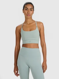 Damski stanik do ćwiczeń posiada szybkoschnące włókna w technologii 4FDry, które wspierają odprowadzanie wilgoci z dala od ciała. Dekolt karo. Model z miękkimi, wyjmowanymi miseczkami. Guma pod biustem bez regulacji zapewnia wsparcie i dopasowanie. Cienkie ramiączka z regulatorem długości.