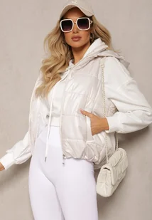 Biała Kamizelka z Odpinanym Kapturem i Kieszeniami Pikowana Aggevia