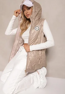 Ciemnobeżowa Kamizelka z Kapturem Ozdobą i Pikowaniem Desirala