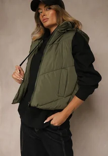 Ciemnozielona Pikowana Kamizelka Casual z Kapturem Olanissa