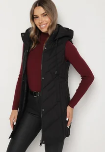 Czarna Pikowana Kamizelka o Taliowanym Kroju z Kapturem Tulonea