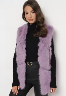 Fioletowa Kamizelka Futrzana z Wstawkami z Ekoskóry Batliewa