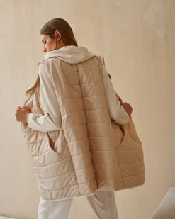 Must have nadchodzącej wiosny! Lekka kamizelka w fasonie litery „A". To wygodna i praktyczna część wierzchniej garderoby. Stworzyliśmy ją w modnym i neutralnym odcieniu beżu latte z lamówkami w śmietankowej bieli. Całość lekko przepikowaliśmy. Zapinana na napy.