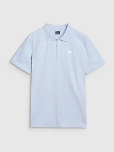 4F Koszulka polo regular z nadrukiem męska - niebieska L