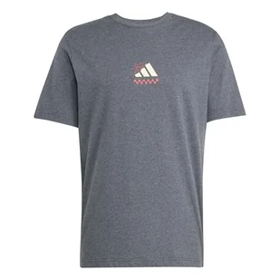 adidas Mężczyźni Three Slice Life, Pizza Back Graphic Tee, Short Sleeve, dark grey heather, M