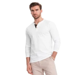 Koszulka męska longsleeve dekolt guziki bawełna biały V10 OM-LSCL-0107 XL