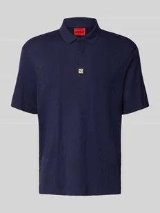 Koszulka polo męska HUGO;Model ‘Dallovo’;Efekt: jednolity kolor / faktura;Krój: Krój relaxed fit;Wzór: Żakardowy wzór;Aplikacja: Naszywka z logo;Kształt kołnierza: