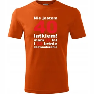 Męska Koszulka z Nadrukiem Nie jestem 40 latkiem, mam 18 lat i 22 letnie pomarańczowy XXL O koszulce męskiej 100 % ekologicznej bawełny wzmocnienie na ramion...