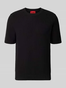 męski t-shirt od HUGO;Model „Saffon”;efekt: imitacja dzianiny;Dopasowanie: krój regular fit;Wzór: faktura;Aplikacja: przeszycie etykiety;dekolt: