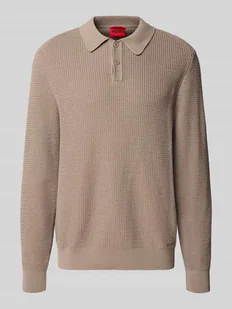 Męski sweter z dzianiny od HUGO;Model „Saffowl”;efekt: jednolity kolor;Dopasowanie: krój regular fit;Aplikacja: przeszycie etykiety;kształt kołnierza: kołnierzyk polo;Krój rękawa: