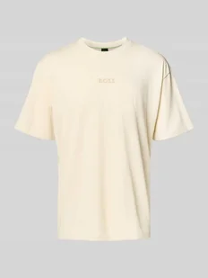 T-shirt męski BOSS Green;Efekt: jednolity kolor;Krój: Krój regular fit ;Aplikacja: Aplikacja z metką;Dekolt: Okrągły dekolt;Rękaw: