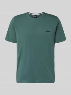 T-shirt męski BOSS;Model ‘Mix&Match T-Shirt R’;Efekt: jednolity kolor;Krój: Krój regular fit ;Aplikacja: Wyhaftowane logo, paski w kontrastowym kolorze przy kołnierzu;Dekolt: Okrągły dekolt;Rękaw: