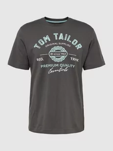 T-shirt męski TOM TAILOR;Czysta bawełna;Krój regular fit;Jednolity kolor;Nadruk z logo;Okrągły dekolt z prążkowanego ściągacza;Długość tyłu w rozmiarze M: 67 cm