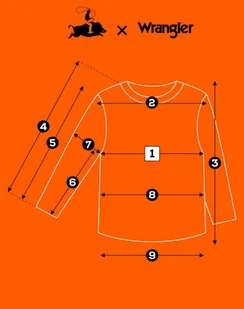 Rozłóż ubranie na płaskiej powierzchni z równo schodzącym się przodem i tyłem. W pierwszej kolejności zmierz szerokość pod pachami 1. Pozostałe wymiary są pomocnicze. Nie porównuj wymiarów na ciele, wówczas jest duże ryzyko błędu. WYMIARY KOSZULKI Z DŁUGIM RĘKAWEM szerokość pod pachami: