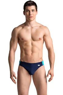 Męskie, wysoko wycięte kąpielówki, boczne wstawki w pasujących kolorach, ściągane w pasie gumką i sznurkiem, podwójne, płaskie szwy, zwiększona odporność na chlor i zniekształcenia, wykonane z wysokojakościowego poliamidu z dodatkiem elastanu, zapewniającym wymaganą elastyczność i rozciągliwość.