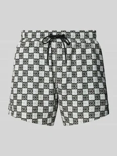 Męskie spodenki kąpielowe od HUGO;Model „Aaron”;efekt: jednolity kolor;Dopasowanie: krój regular fit;Aplikacja: Nadruk z logo;Ściągacz: elastyczny z tunelem;Kieszenie: boczne wpuszczane kieszenie