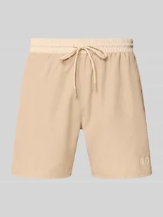 Męskie spodenki kąpielowe od BOSS;Model „Starfish”;efekt: jednolity kolor;Aplikacja: Nadruk z logo;Szczegóły: szew w kontrastowym kolorze;Zapięcie: tunel;ściągacz: elastyczny;Kieszenie: boczne wpuszczane kieszenie, kieszeń z tyłu