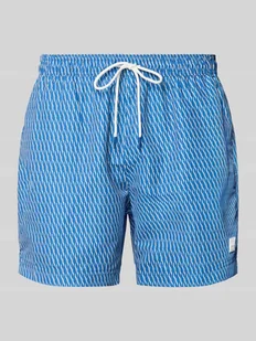 Spodenki kąpielowe męskie BOSS;Model ‘Vibe’;Efekt: Wzór na całej powierzchni;Aplikacja: Naszywka z logo;Zapięcie: Tunel;Pas: elastyczny;Kieszenie: boczne, wpuszczane kieszenie, kieszeń z tyłu