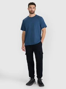 Męskie spodnie tkaninowe - CECHY: gramatura 263 gsm – zapewnia dobrą równowagę między trwałością a komfortem noszenia zakres rozmiarów S-XXL – szeroka dostępność dopasowana do różnych sylwetek wnętrze bez podszycia – lekka konstrukcja sprzyjająca przewiewności krój regular – swobodne dopasowanie do naturalnej linii ciała nogawki z elastyczną gumką – stabilne trzymanie i wygoda podczas ruchu wykonane w 98% z bawełny – miękkie, trwałe i przyjemne dla skóry jednolita kolorystyka – uniwersalny wygląd łatwy do zestawienia z innymi elementami garderoby 2 otwarte kieszenie boczne – szybki dostęp do drobnych przedmiotów kieszenie cargo z zapięciem na napę – dodatkowa przestrzeń do przechowywania i bezpieczne zamknięcie pas z zewnętrzną regulacją na sznurki – indywidualne dopasowanie obwodu w talii Spodnie casual męskie idealnie sprawdzą się jako element zarówno lifestylowych, jak i sportowych stylizacji na co dzień. Posiadają krój regular, który wygodnie dopasowuje się do sylwetki oraz zwężane nogawki zakończone elastyczną gumką. Spodnie na co dzień męskie posiadają średnią gramaturę materiału 263 gsm, która sprawia, że są one miękkie oraz bardziej przewiewne. Spodnie casualowe dla mężczyzny są wykonane w 98% z bawełny, dzięki czemu są miękkie, trwałe i przyjemne w dotyku.