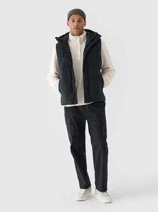 Po bokach znajdują się 2 kieszenie otwarte. Dodatkowo z tyłu znajduje się niezapinana kieszeń. Co więcej, na udach umieszczono dodatkowe kieszenie cargo z zapięciem na napę. Pas z podwójnym zapięciem na suwak oraz napę. Męskie spodnie tkaninowe - CECHY: