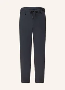 Krój: tailored fit. Regularny stan. Zwężane do dołu, szerokie nogawki. Elastyczny pas w talii z tunelem z troczkiem. Szlufki. Zapięcie na zamek błyskawiczny.