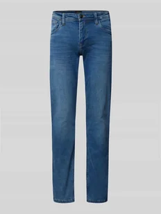Jeansy o kroju slim fit męskie Tom Tailor Denim;Efekt: jednolity kolor;Krój: Krój slim fit;Krój wg producenta: regular rise, slim leg;Aplikacja: Naszywka z logo;Detale: