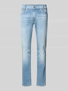 Jeansy męskie Pepe Jeans;Model ‘Spike’;Efekt: jednolity kolor;Krój: Krój slim taper;Stan: Średni stan;Aplikacja: Wyhaftowane logo, naszywka z logo;Detale: