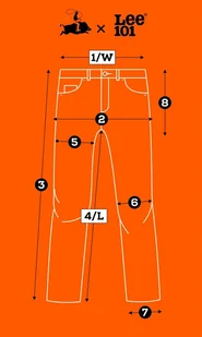 JAK MIERZYĆ? Porównaj wymiary z własnymi, dobrze dopasowanymi spodniami. Rozłóż ubranie na płaskiej powierzchni, zapięte, z równo schodzącym się przodem i tyłem. W pierwszej kolejności sprawdź szerokość pasa 1 / W oraz długość wewnętrzną nogawki wzdłuż szwu 4 / L. Wartości te odpowiadają rozmiarowi spodni podanych w calach na metce W / L (waist / lenght). Pozostałe wymiary są pomocnicze.