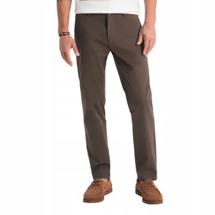 Męskie spodnie chino REGULAR FIT - brązowe V3 OM-PACP-0184 S - Ombre