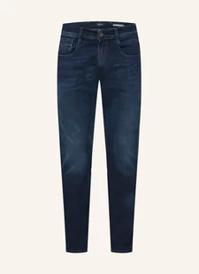 Proste nogawki. Długie nogawki. Szlufki. Solidny w dotyku materiał. Solidny denim. Naszywka skórzana na pasie.