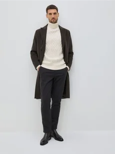 Spodnie typu chino o dopasowanym kroju, wykonane z bawełnianej tkaniny.