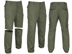 Parametry: Model: Zipp Off spodnie trekkingowe 2w1 Producent: Mil-Tec, Niemcy Materiał: POLI-CO (65% poliester, 35% bawełna) Klasyczny krój BDU US Army Odpinane nogawki 6 kieszeni: 2 klasyczne, 2 tylne oraz 2 boczne Cargo Kieszenie boczne oraz tylne zapinane na guziki Listwa materiałowa maskująca zamek przy nogawkach Wzmocnienie w kroku i na pośladkach Ściągacze u dołu Rozporek na guziki Pas regulowany bocznymi ściągaczami 2 x 5 cm Szerokość szlufki 5 cm Kolor: Olive