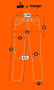 Rozłóż ubranie na płaskiej powierzchni, zapięte, z równo schodzącym się przodem i tyłem. W pierwszej kolejności sprawdź szerokość pasa 1 / W oraz długość wewnętrzną nogawki wzdłuż szwu 4 / L. Wartości te odpowiadają rozmiarowi spodni podanych w calach na metce W / L (waist / lenght). Pozostałe wymiary są pomocnicze. Nie porównuj wymiarów na ciele, wówczas jest duże ryzyko błędu.