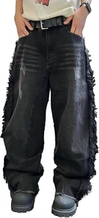 Zewool Męskie Spodnie Baggy Jeansowe Y2k Hip Hop Luźne Oversize Czarne S Opis produktu Podkręć swój uliczny look dzięki męskim spodniom jeansowym marki Zewool, które stanowią idealne połączenie nostalgii lat 2000. i nowoczesnego stylu ulicznego. Te czarne dżinsy typu baggy to kwintesencja estetyki Y2K oraz kultury hip-hopowej, zaprojektowana dla osób, które nie boją się wyróżniać z tłumu. Charakterystyczne, postrzępione obszycie nadaje im unikalny, surowy charakter "distressed", który doskonale wpisuje się w aktualne trendy mody alternatywnej i skaterskiej. Dzięki ekstremalnie luźnemu krojowi oversize, spodnie zapewniają nieograniczoną swobodę ruchów, co czyni je idealnym wyborem na deskę, taniec lub po prostu jako fundament codziennej, wygodnej stylizacji.