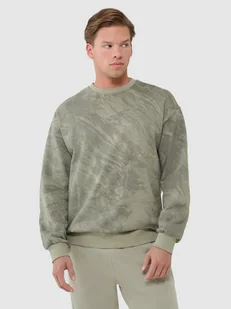 Dół z szerokim ściągaczem. Bluza bez kaptura 4F męska - CECHY: gramatura: 330 gsm zakres rozmiarów: S-3XL wnętrze bez podszycia krój: regular, który wygodnie dopasowuje się do sylwetki standardowy fason sięgający do bioder wykonana w 100% z bawełny, dzięki czemu jest miękka, trwała i przyjemna w dotyku nadruk na całej powierzchni (all-over) dzianina dresowa french terry na zewnątrz jest gładka, a wewnątrz ma widoczny splot w postaci pętelki okrągły dekolt ze ściągaczem mankiety ze ściągaczem bez kieszeni wkładana przez głowę dół ze ściągaczem