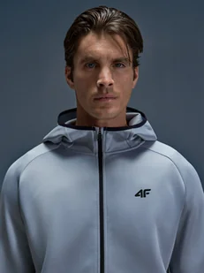 Będzie dobrym wyborem na co dzień, zwłaszcza przed lub po treningu. Bluza sportowa 4F męska z kapturem posiada średnią gramaturę 290 gsm, która sprawia, że jest ona miękka oraz bardziej przewiewna. Bluza do ćwiczeń rozpinana dla mężczyzny jest wykonana z materiału syntetycznego, który zapewnia trwałość i jest łatwy w pielęgnacji. Dzięki dodatkowi elastanu (8%) jest rozciągliwa i wygodnie układa się na sylwetce. Wykorzystane szybkoschnące włókna w technologii 4FDry wspierają odprowadzanie wilgoci z dala od ciała.