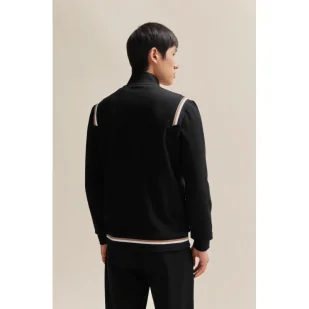BOSS Męska bluza dresowa 1 z mieszanki bawełny z krótkim zamkiem błyskawicznym i taśmą z logo, kolor czarny, rozmiar S, czarny, S