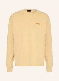 Długie rękawy. Prosty krój. Prążkowane ściągacze przy wycięciach na rękawy. Okrągły dekolt. Gładka powierzchnia wewnętrzna. Haft z marką. Z bawełny. Nadruk ze wzorem. Prążkowane ściągacze przy rąbku. Dresowy materiał