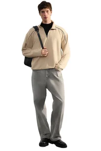 TRENDYOL MAN BLUZA MĘSKA BEŻOWA Z ZAMKIEM I STÓJKĄ NA DŁUGI RĘKAW M 5DA